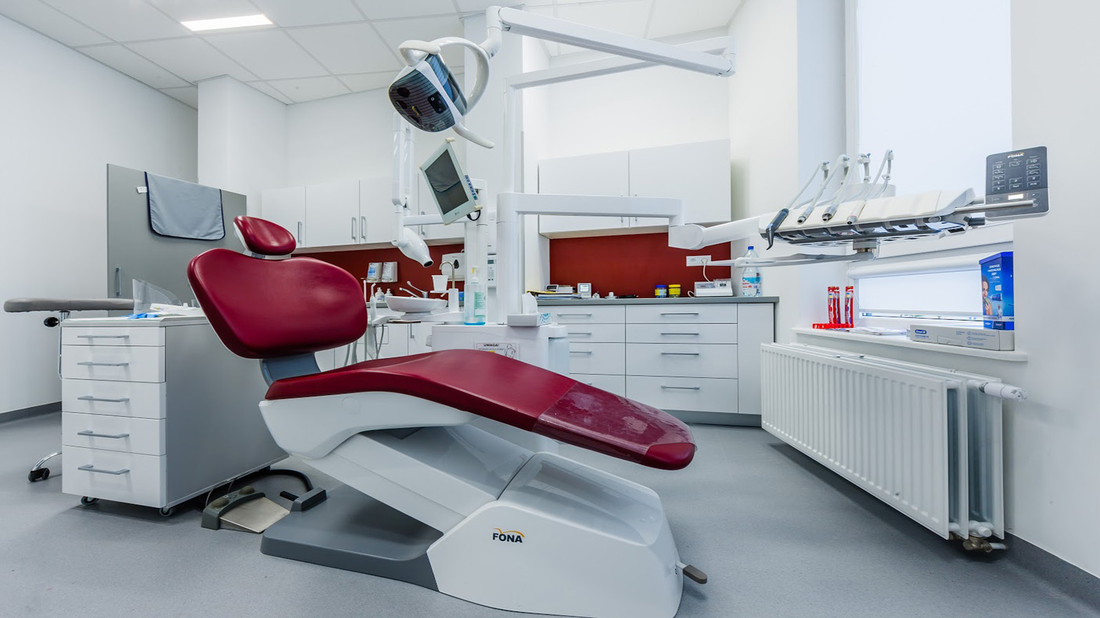 Stylowe i nowoczesne wnętrze, dostosowane jest do potrzeb dzieci i osób niepełnosprawnych w niczym nie przypomina typowych gabinetów stomatologicznych. Posiadamy 4 gabinety stomatologiczne i gabinet radiologiczny, które wyposażone są w najnowocześniejszy sprzęt diagnostyczny i leczniczy.